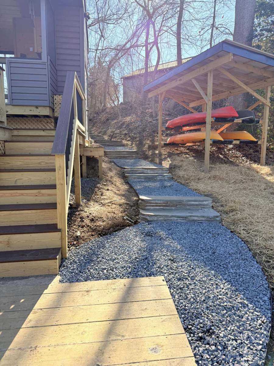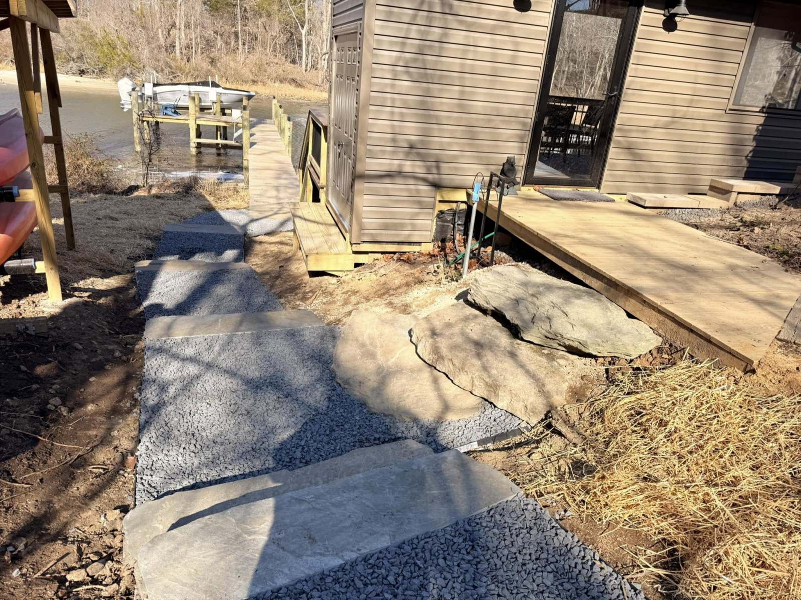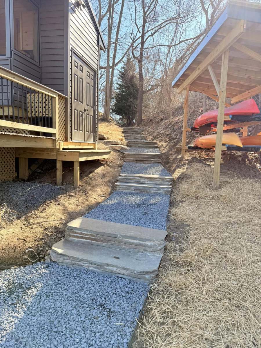 Hardscapes knocked this project out the water. 100% natural stone, custom built on site but looks like it’s been there since the beginning of time. Mixture of boulders, flagstone and crushed blue stone.