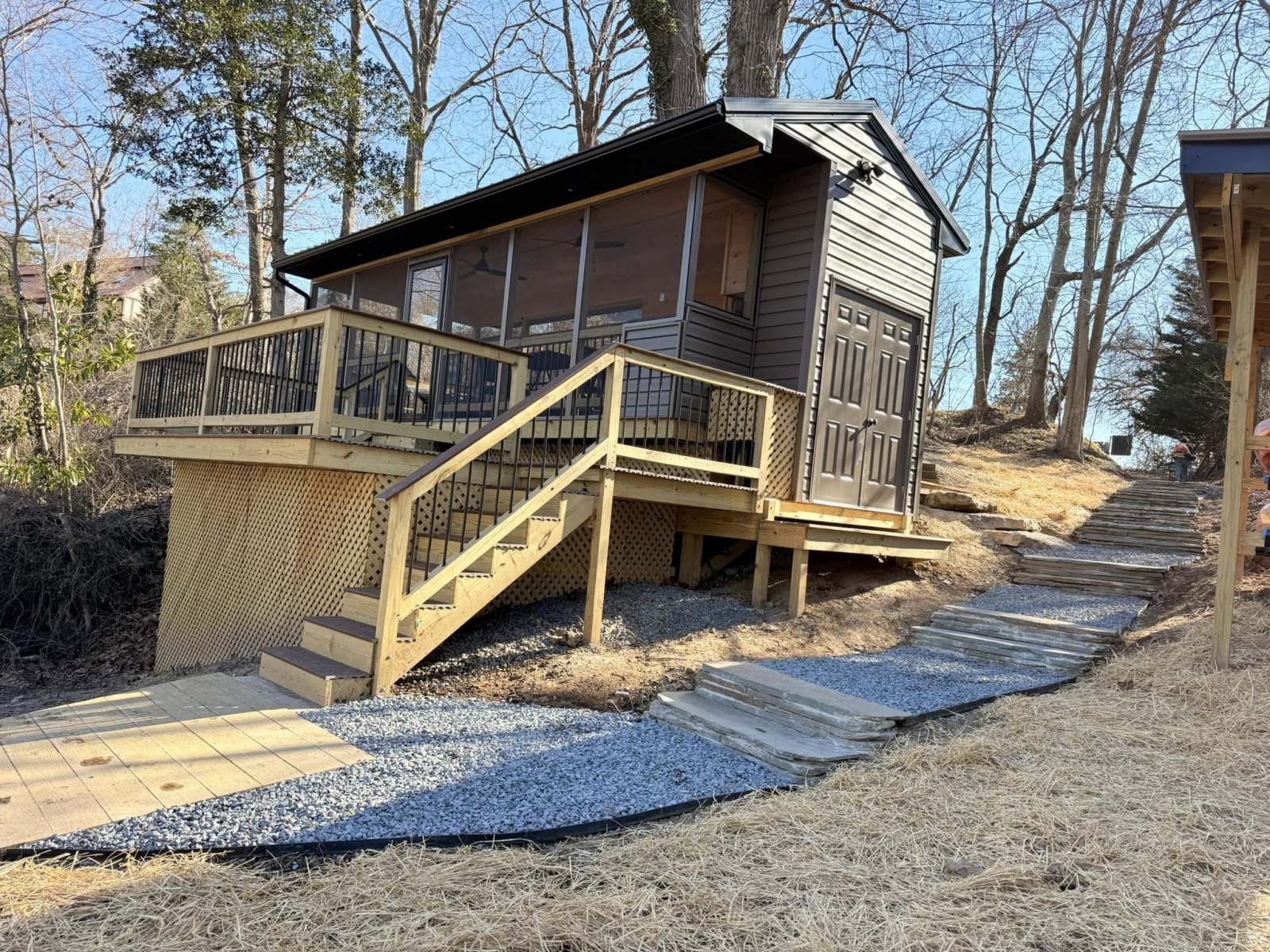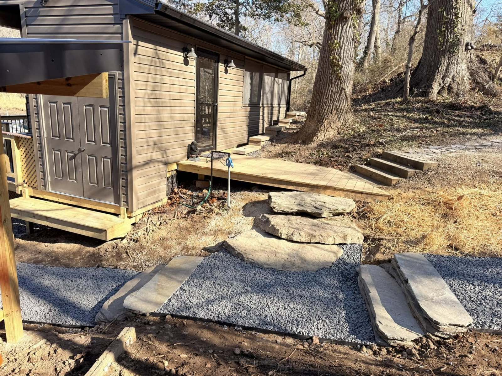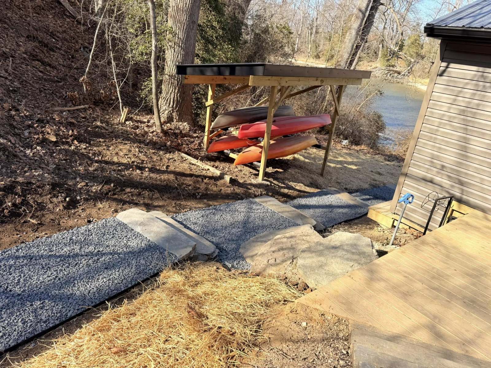 Hardscapes knocked this project out the water. 100% natural stone, custom built on site but looks like it’s been there since the beginning of time. Mixture of boulders, flagstone and crushed blue stone.
