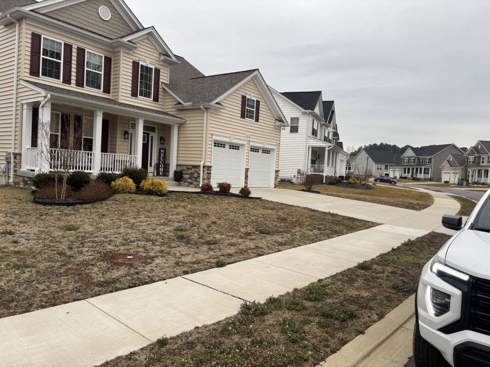 Some before and after photos of a front yard landscape transformation in Lexington Park, Maryland. Added curb appeal, and depth to this beautiful home.
