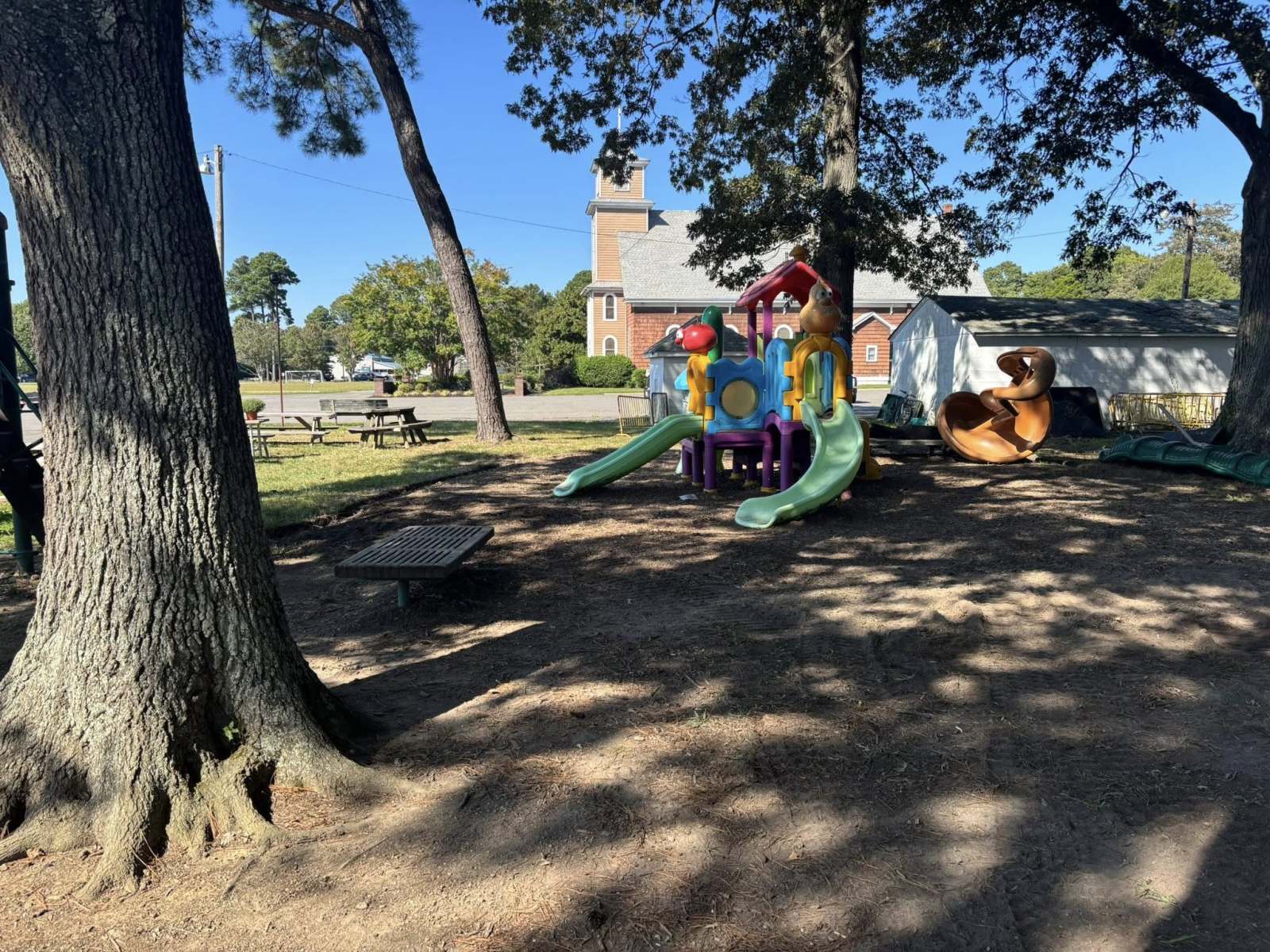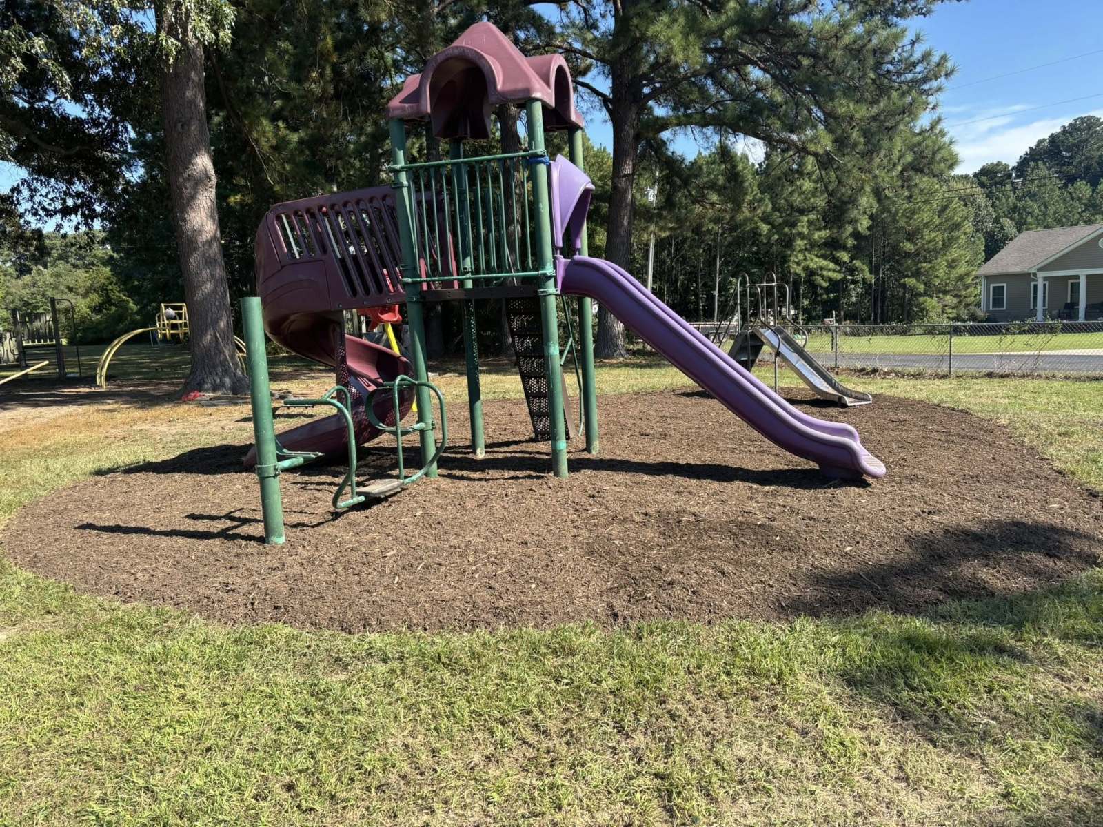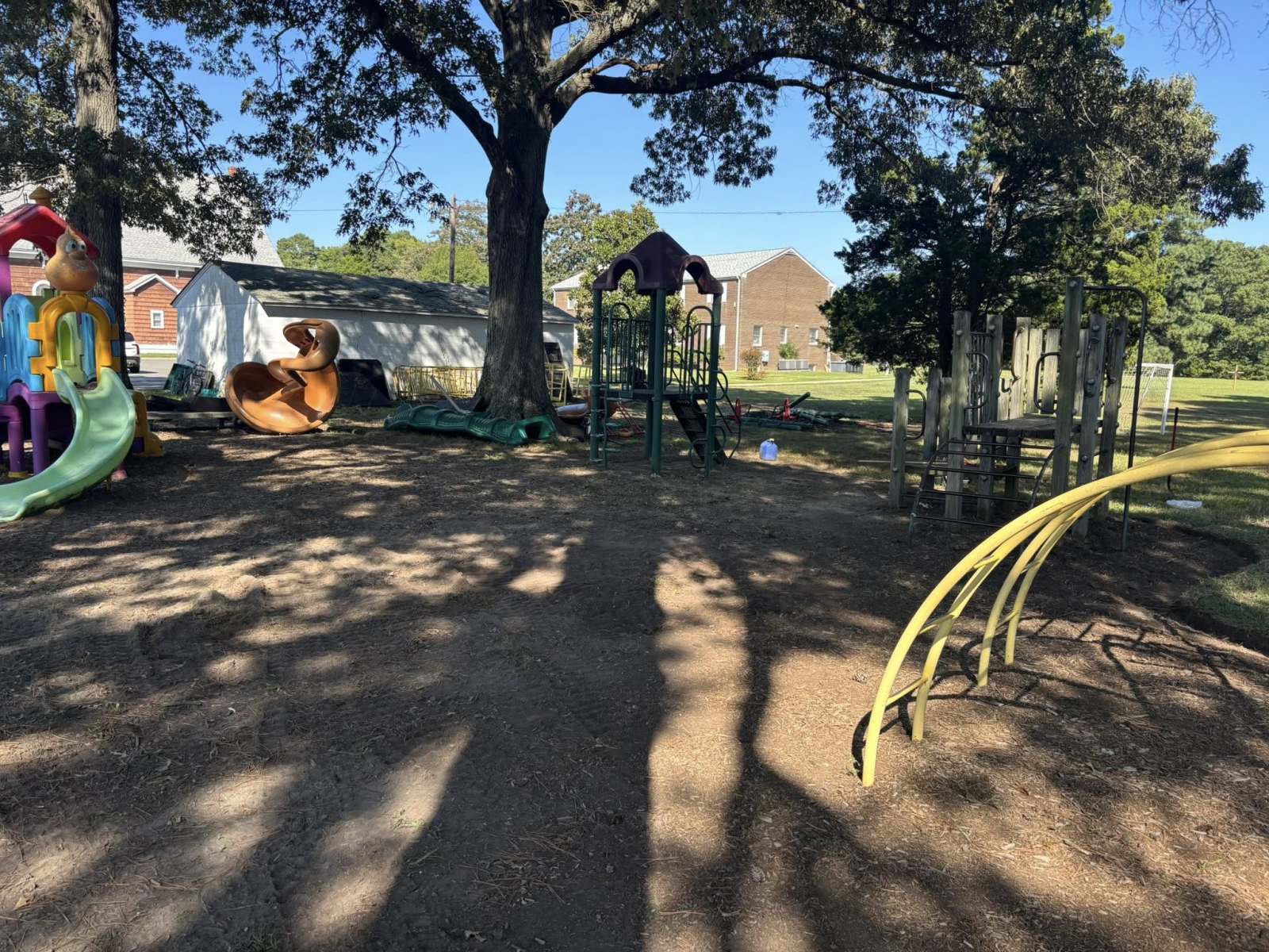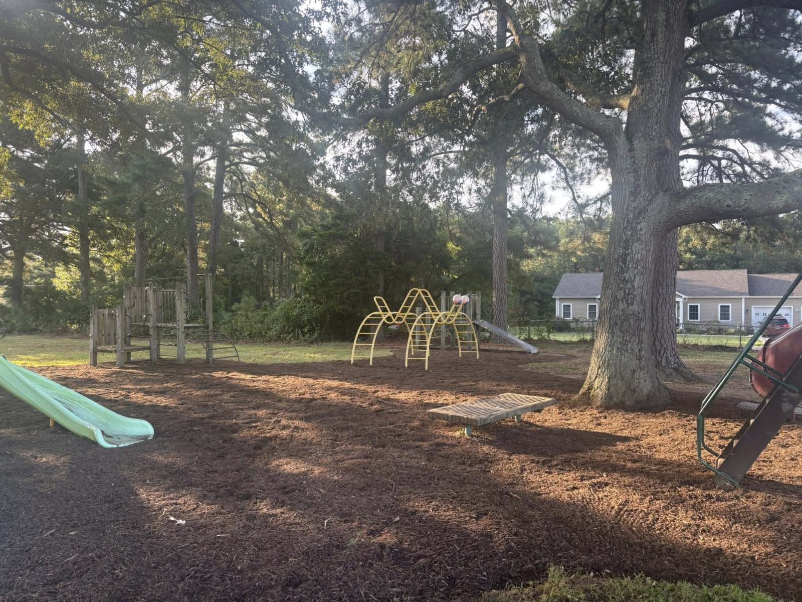 St Michaels got a huge upgrade to the playground areas yesterday. Crew prepped areas and installed 60 yards of shredded hardwood mulch as a buffer to keep the kiddos safe at recess.